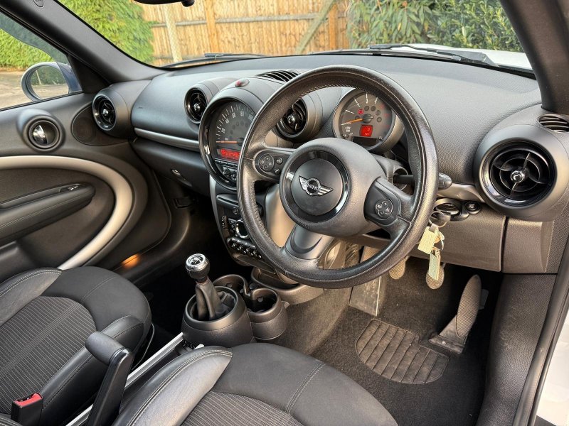 ULEZ?.HEATED LEATHER TRIM SEATS. This 2016 MINI Countryman Cooper D offers a superb blend of style and practicality, making it an excellent choice for those seeking a versatile vehicle. Powered by an efficient 1.6L diesel engine, this Cooper D variant boasts a sophisticated Anthracite Headlining for a premium feel. Convenience is enhanced with a Flat Load Floor in the boot, perfect for carrying larger items, and the Rain Sensor coupled with Automatic Headlight Activation ensures visibility is always optimised. For connectivity and entertainment, it features Basic Bluetooth Function with USB Audio, while parking is made simpler with the PDC Park Distance Control for the rear.